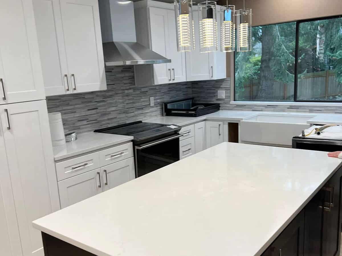 Quartz is a favorite in Kirkland due to its durability, modern look, and low maintenance.