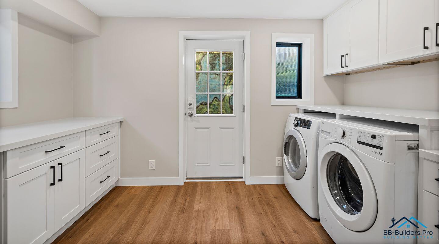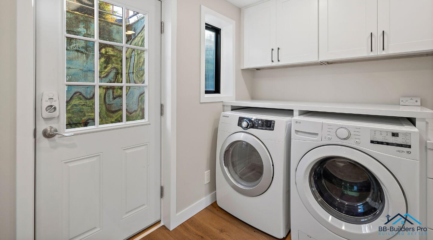 The shower was relocated to a new position in the floor plan, which required adjusting the hot and cold supply lines, moving the drain, and re-routing waste lines to meet the updated floor plan. Stop valves in both the bathroom and the adjacent laundry room were replaced at the same time. Full bathroom enclosure framing was also completed at this stage, including partition walls, ceiling soffit, and a dedicated furnace closet separation. All framing is built plumb, level, and compliant with the Seattle Residential Code.