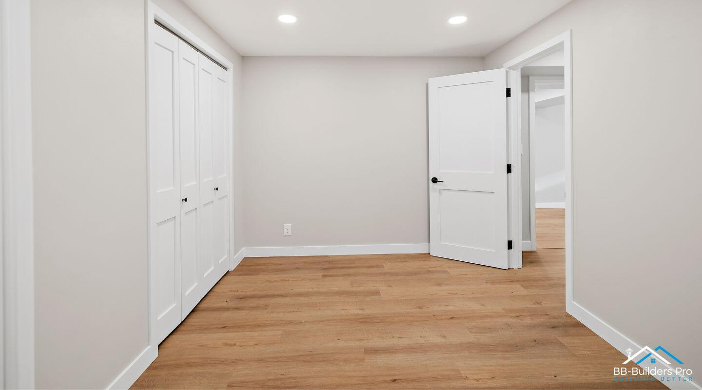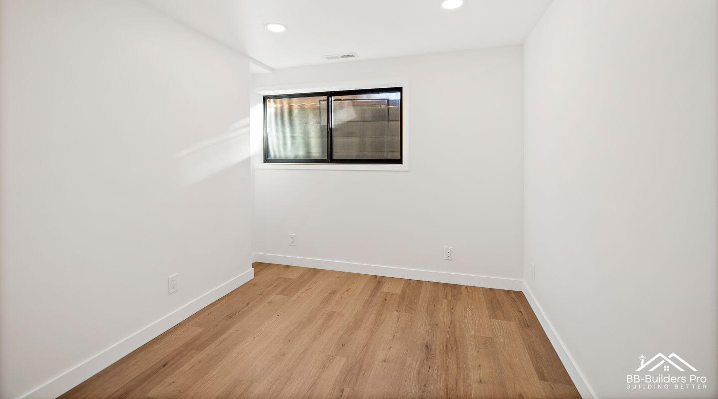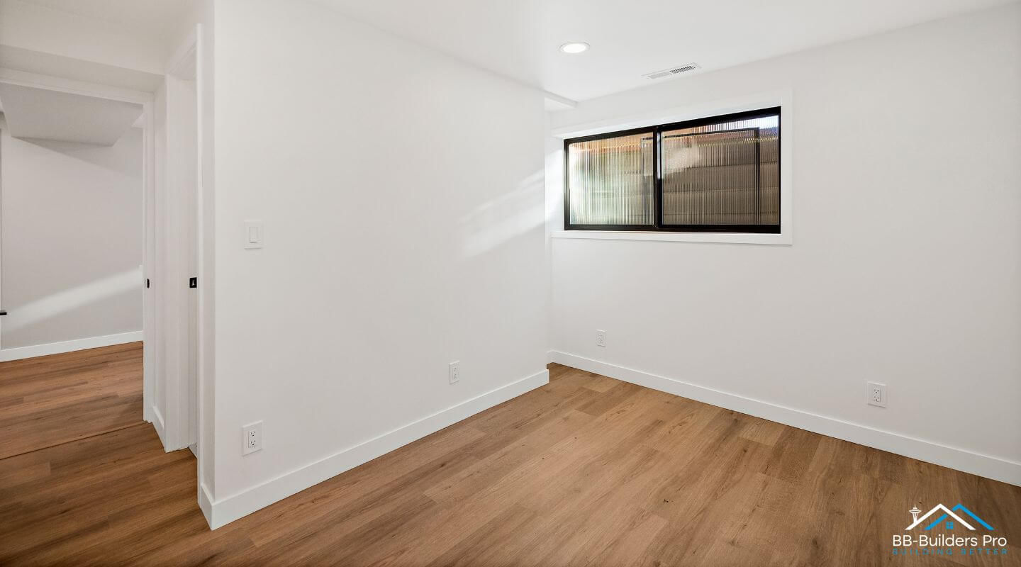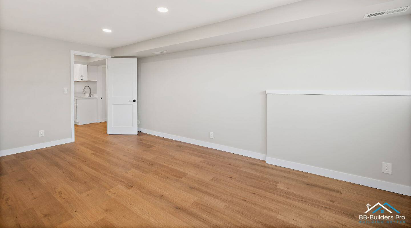 GFCI-protected outlets are installed per code, along with recessed LED lighting wired as part of the overall basement lighting plan. Non-tiled wall and ceiling surfaces received moisture-resistant drywall, taped, mudded, and textured to match the rest of the finished basement. Final fixture installation includes the bathtub or shower base, vanity, toilet, faucet set, showerhead, and valve trim. All supply lines, wax ring, drain covers, and caulking are included.